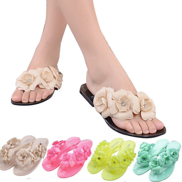 2016 New Summer Hot Women Sandals With Beautiful Camellia Flower Sweet Flip Flops XWZ455