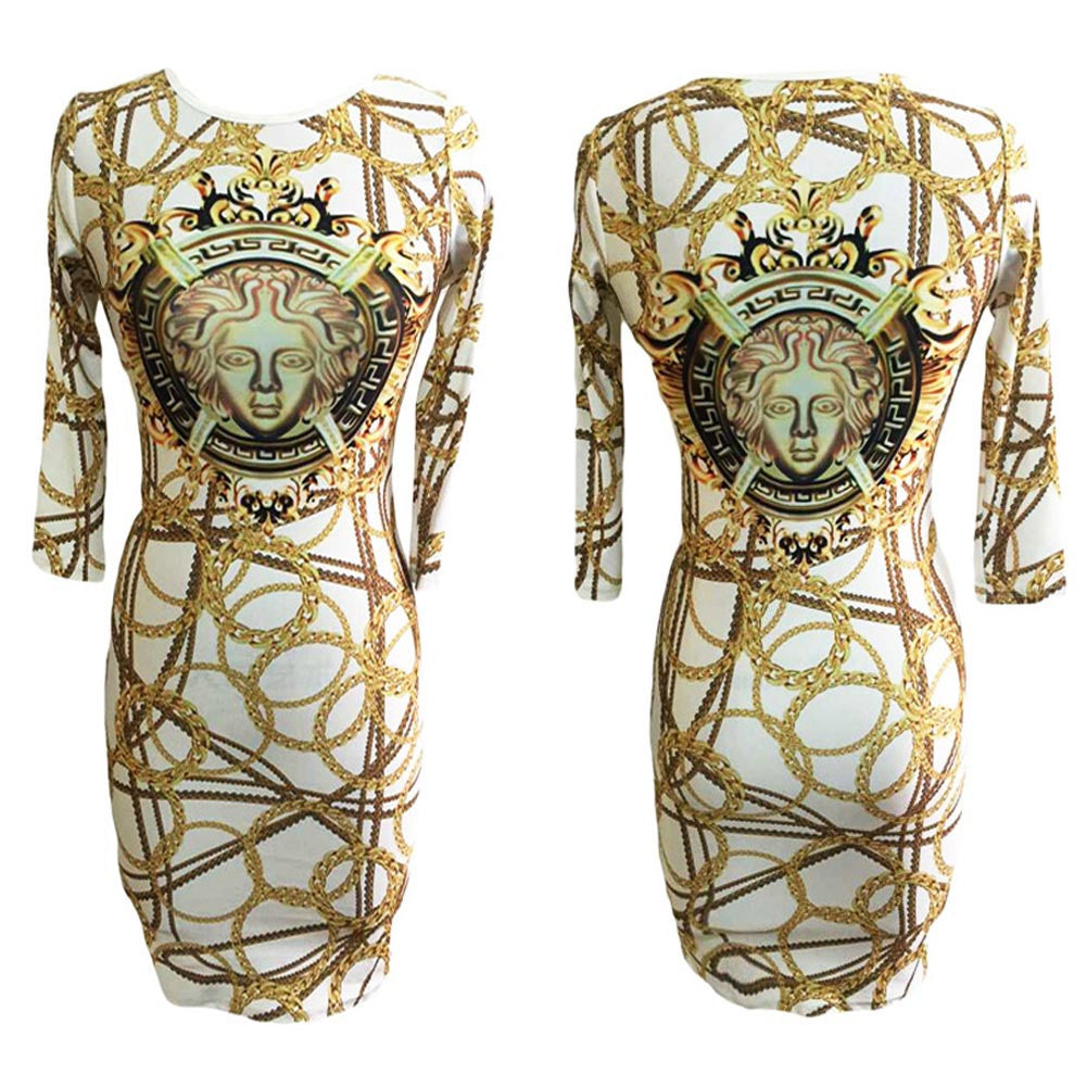 2016 New Fashion Women Spring Sexy Chinese Style Bodycon Dresses Trendy Gold Chain Print Mini Dress Vestidos Para Festa......