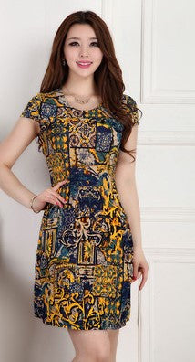 2016 New 21 styles Fashion Women summer Tunic Milk Silk Print Short sleeve O neck Slim dress.....