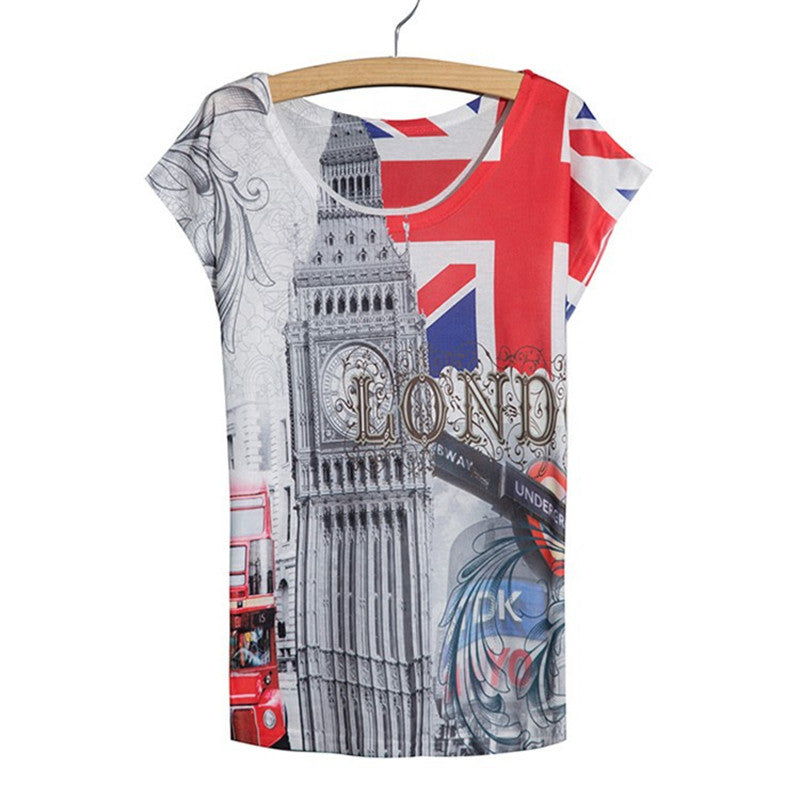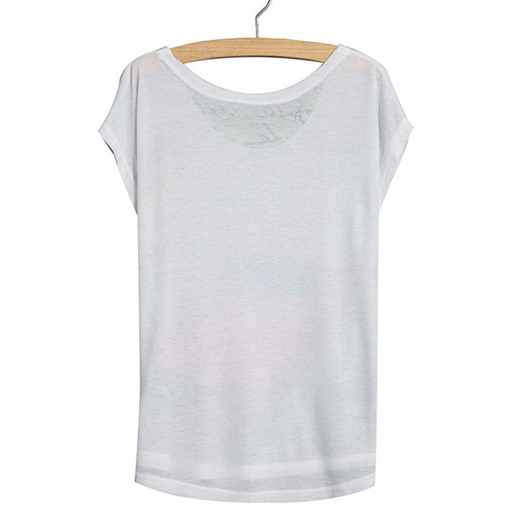 New 2016 Fashion Style Female Ladies' t-shirt slim Summer thin tees Batwing Sleeve Ladies Red Bus Printed Women Top T Shirt