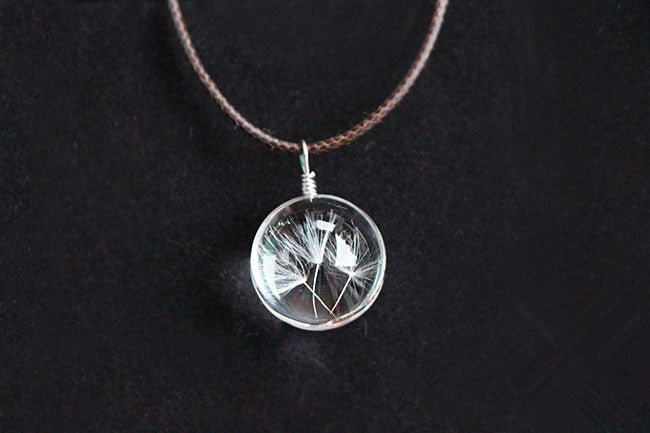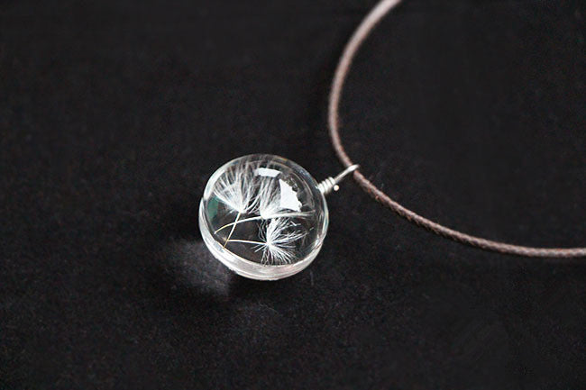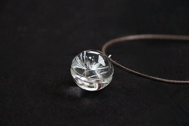 Hot sale Real Dandelion Jewelry Crystal Glass Ball Dandelion Necklace Long Strip Leather Chain Pendant Necklaces For Women