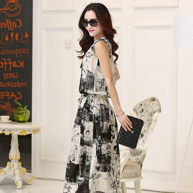 Vestido floral 2015 verão roupa nova algodão maxi vestido sem mangas azul vestido longo vestido