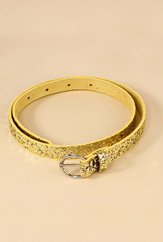 Accessorize any outfit with this yellow shimmer belt! Perfect amount of glitter for the chic in you! This belt fits perfectly with fitted jeans, shorts, or skirt. Available in all sizes.